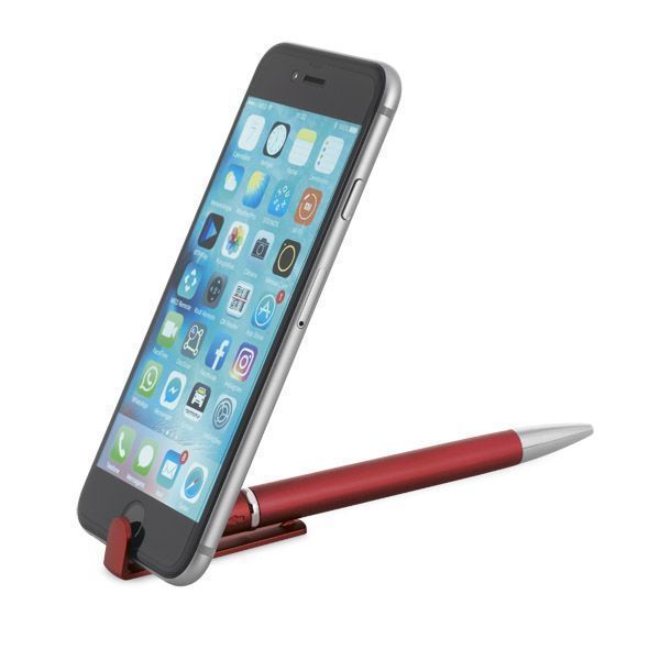 Bolígrafo. Acabado metalizado. Con punta touch y soporte para móvil. ø11 x 144 mm