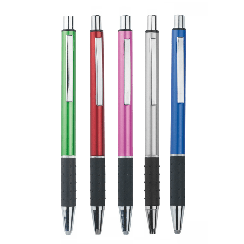 Bolígrafo de aluminio en varios colores combinado con caucho negro.