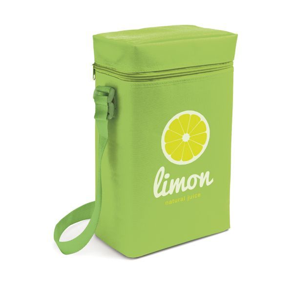 Bolsa nevera. 600D. Asa ajustable en webbing. Capacidad hasta 2 botellas de 1,5 L. 190 x 340 x 100 mm.