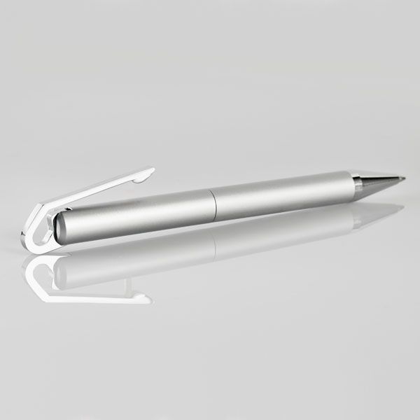 Bolígrafo de bronce con mecanismo twist. Clip metálico con muelle, con cromado brillante. Punta de bronce con acabado cromado brillante. Cuerpo con doble acabado: interior plateado y exterior lacado mate. Carga metálica G2. Tinta Dokumental® azul. Duración de escritura, mínimo: 2 Km. ø11 x 142 mm | Estuche: 175 x 41 x 20 mm