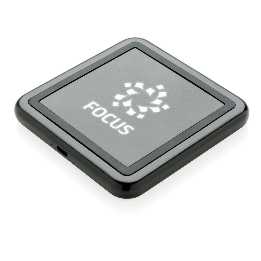 Carga tus dispositivos móviles sin conectar un solo cable. Simplemente coloca tu teléfono móvil en el teclado y espera a que aparezca la notificación de carga. La plataforma de carga te permite decorarlo con tu propio logotipo en la almohadilla, una vez conectado se iluminará para una exposición óptima. Compatible con todos los dispositivos QI habilitados como Android de última generación, iPhone 8 y posteriores. Entrada: 5V / 2A. Salida inalámbrica: 5W