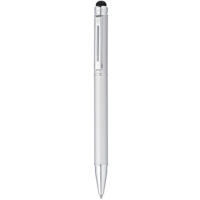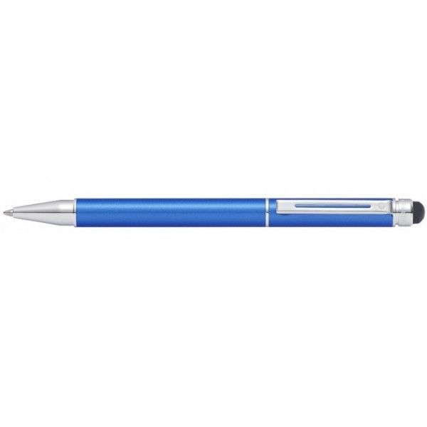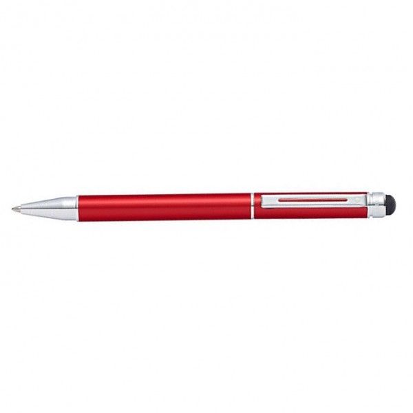 Elegante, barril rojo metálico con acentos de cromo pulido. Clip de bolsillo resistente con el punto blanco Sheaffer. Lápiz óptico en la tapa para su uso con la pantalla táctil ( tablets). No reemplazable). Mecanismo liso, de torsión-retracción. Recargables con recambios de bolígrafos Sheaffer «K» en trazo medio disponible en tinta negra.