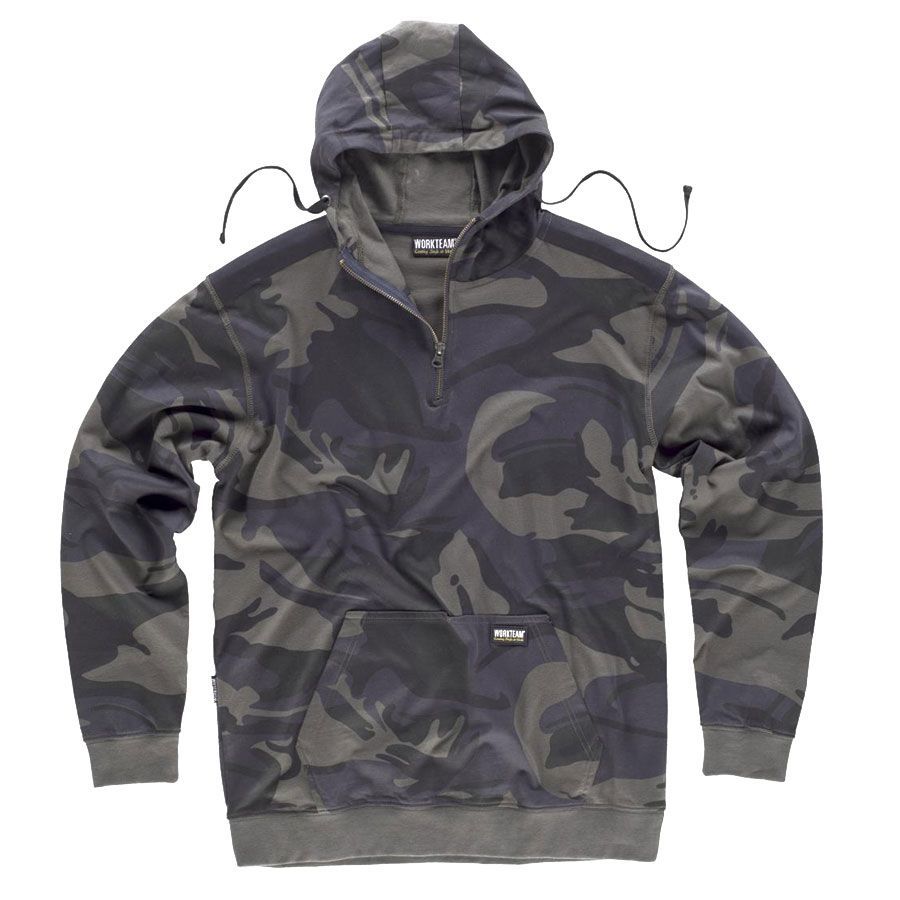 Sudadera de algodón con estampado de camuflaje. Capucha ajustable con cordón y cubrecosturas interior. Pieza combinada en hombros y cierre de media cremallera de metal. Un bolso central con accesos laterales. Costuras reforzadas. Puños y cintura elásticos en punto canalé.