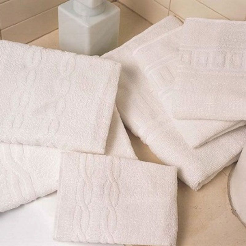 Toallas para hoteles blancas con dos composiciones con hilatura de 24/2 cabos.
